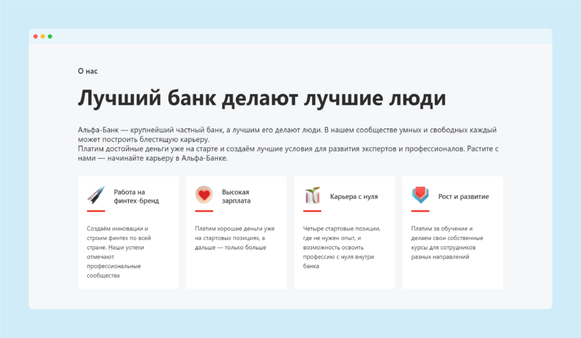Альфа-Банк — преимущества, UX/UI карьерного сайта