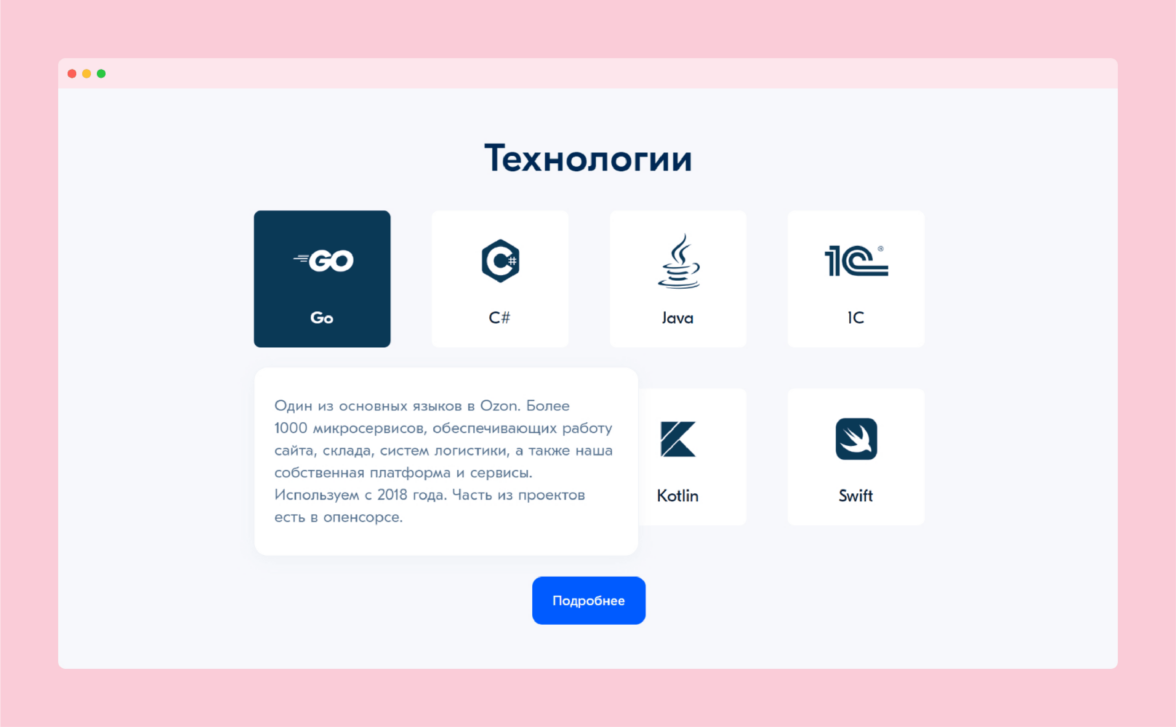 Когда мы проводили обзор этого карьерного сайта, мы не задавались вопросом, что будет дальше при нажатии на кнопку. Всё было очевидно, UX помог нам лишний раз не думать, чего обычно дизайнеры и добиваются от пользователей — чтобы они не думали и не придумывали. #спасибо_ozon