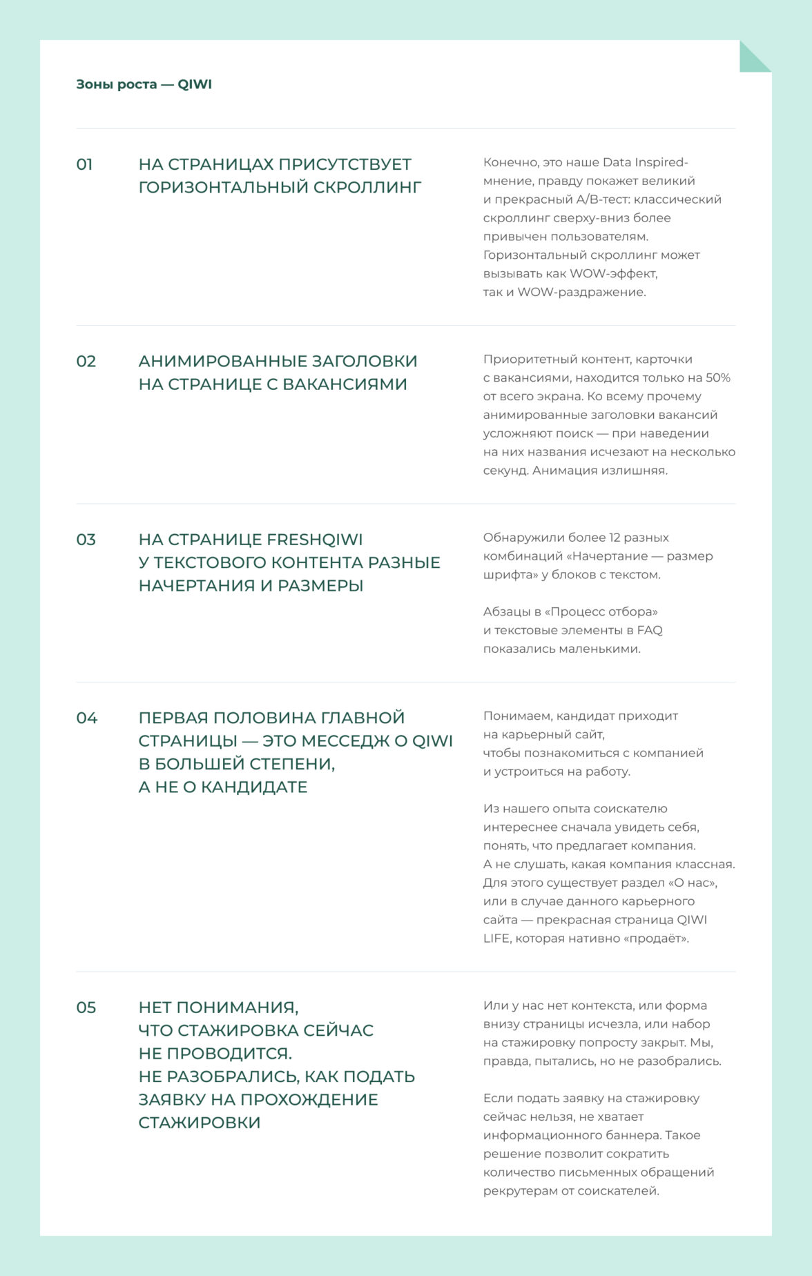 Воронка кандидата. Команда QIWI расписала весь путь соискателя от отклика до оффера, чтобы процесс трудоустройства был прозрачным. Это решение демонстрирует заботу по отношению к соискателю, что работодателю не всё равно.