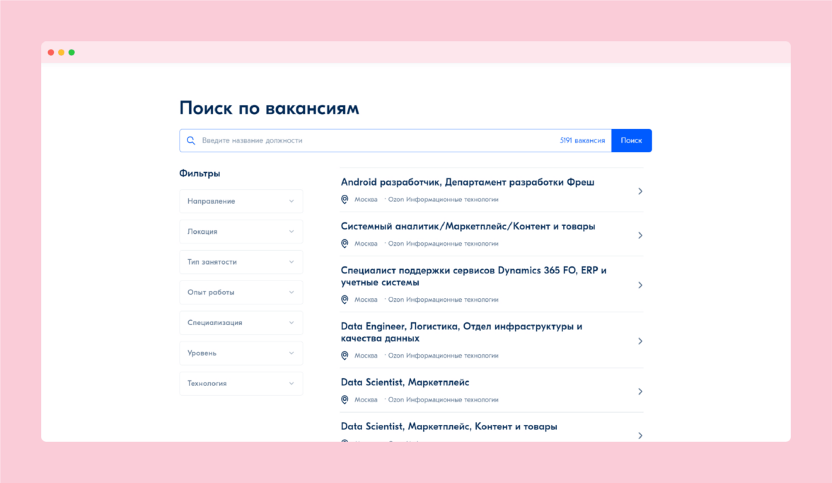 Ozon Job — зоны роста, UX/UI карьерного сайта