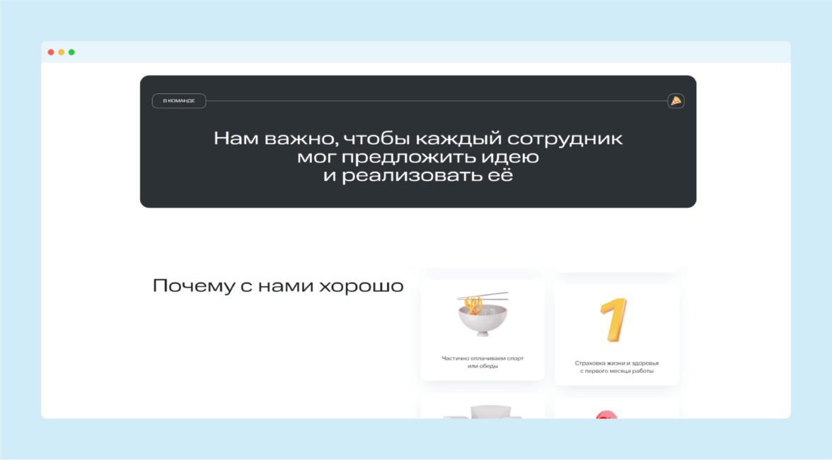 Но некоторые компании справляются и с этой задачей. Производят WOW-эффект на потенциальных сотрудников даже на странице, от которой ничего сверхъестественного не ждут.