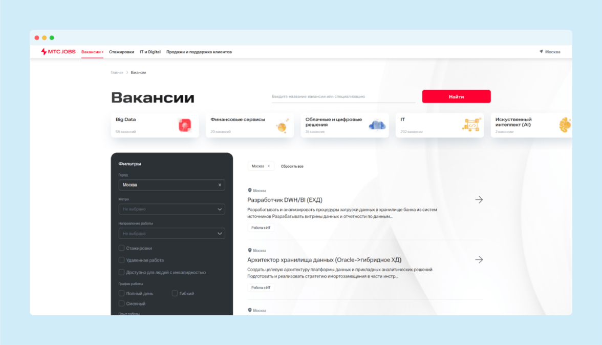 МТС JOBS — преимущества, UX/UI карьерного сайта