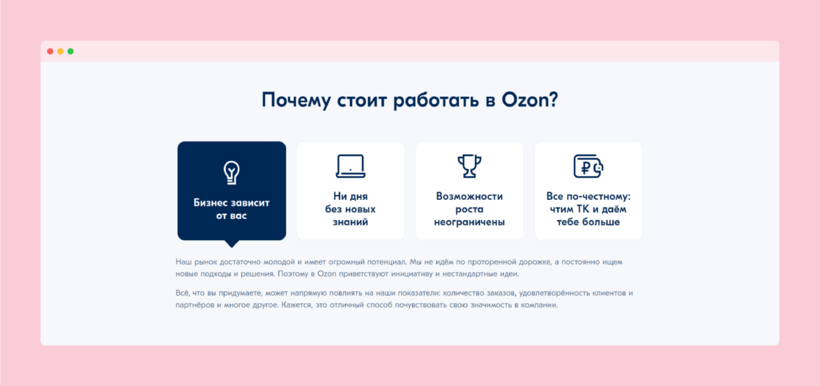 Ozon Job — преимущества, UX/UI карьерного сайта
