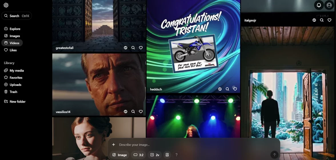 Sora — нейросеть от авторов ChatGPT, которая умеет генерировать реалистичные видеоролики сразу со звуком: шумами, голосами и музыкой. Сервис работает не только как инструмент генерации, но и как платформа с лентой нейровидео — по формату она ближе к TikTok, чем к классическому видеоредактору.