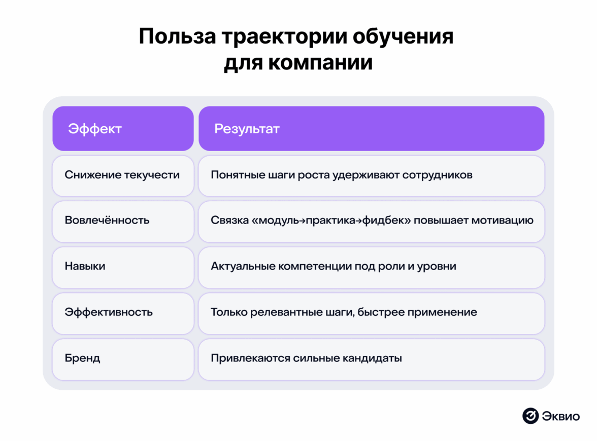 Именно траектории обучения превращают обучение из разрозненной активности в стратегический инструмент удержания и мотивации сотрудников.