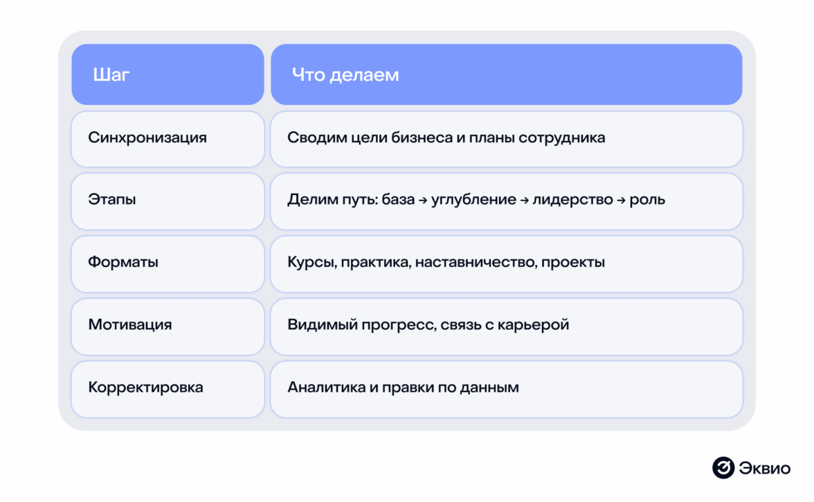 Первый шаг — определить точку пересечения: куда движется бизнес и куда хочет расти сам сотрудник. Если маршруты расходятся, обучение превращается в формальность.