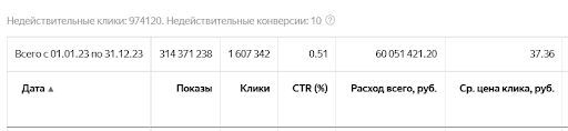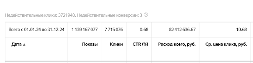 Такое соотношение не укладывается в те объемы, которые фильтрует антифрод Яндекса. Например, по статистике выше, в августе 24 го были отфильтрованы 374041 клика как недействительные.