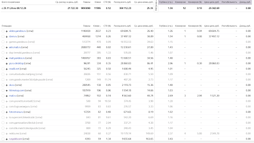 Когда-то, возможно из-за присутствия в стране Google Ads с его КМС, добавления крупных партнерских сетей в РСЯ становилось новостью достойной всяческого освещения (не смог вспомнить релизов после UC Browser в 2018 году), однако, со временем, создалось стойкое ощущение, что ёмкие по трафику площадки появляются как грибы после дождя. Немного поискав удалось найти такой любопытный релиз, где говорится, что за 24 год количество приложений в РСЯ выросло в 1,5 раза до более 15 000 штук. Никого уже не удивляет, если в какой-то момент в статистике обнаружится, что неделю назад появилось нечто, занявшее первые строчки по трафику и даже расходу. По конверсиям такого не случалось, пожалуй, с dzen.ru.