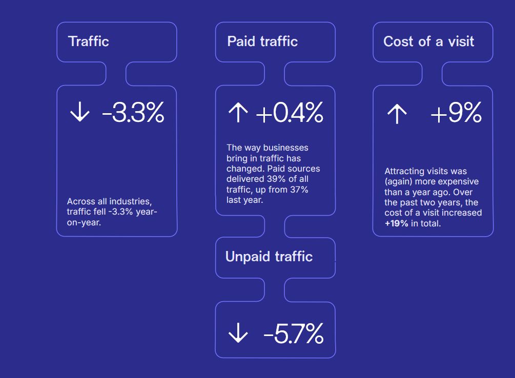 Трафик ушел в рекламу: объем органического трафика сократился на 5,7% при росте стоимости конверсии на 9%