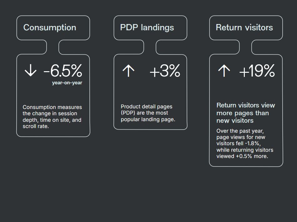 При сокращении новых пользователей на 1,8% в 2024 году и увеличении стоимости их привлечения, есть и позитивные тренды. Например, количество вернувшихся на сайты пользователей немного выросло — на 0,5%. Те, кто вернулся, просматривают на 19% больше страниц на сайте, чем новые пользователи.
