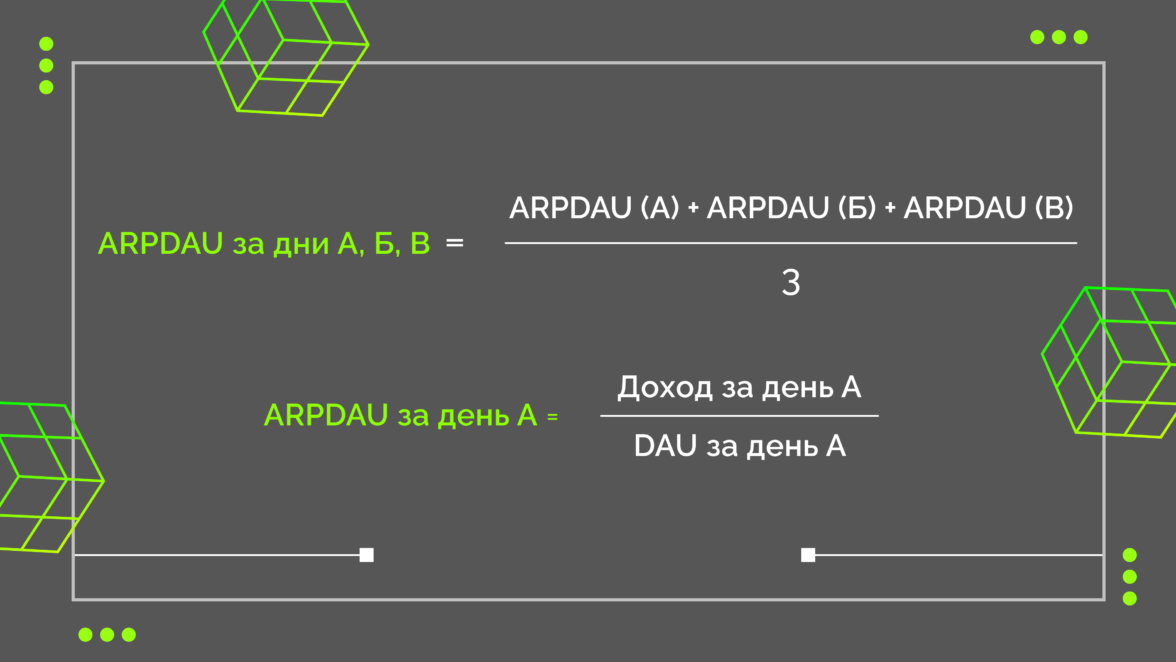 ARPDAU. Средний доход с одного пользователя за указанный период.