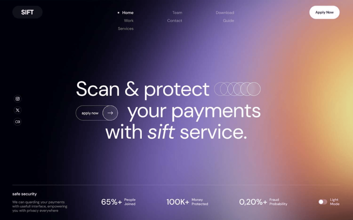 В 2024 году веб-дизайнеры начинают отходить от традиционных цветовых линейных переходов в пользу смелых и неожиданных решений. Градиенты теперь смешиваются из нескольких цветов. Это создает более яркие и запоминающиеся визуальные впечатления, подчеркивая индивидуальность проектов.