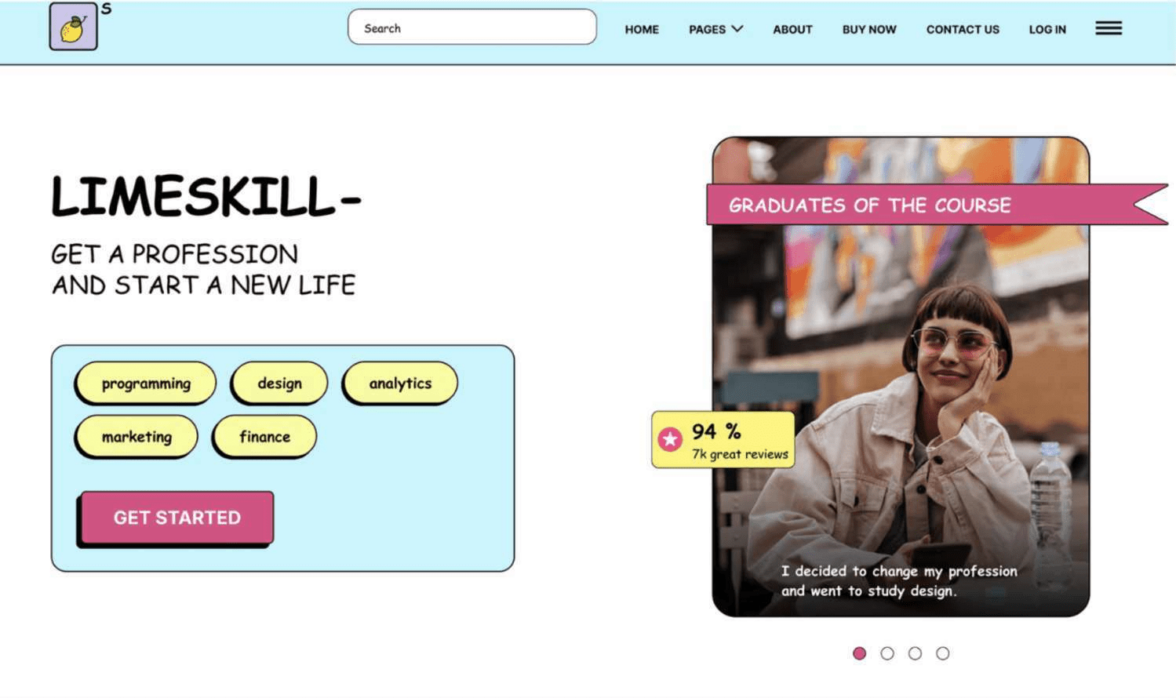 Необрутализм цепляет внимание утонченностью, сочетанием аккуратной типографики и необычных ярких элементов. Этот подход уместен для более элегантных и легких в восприятии интерфейсов.