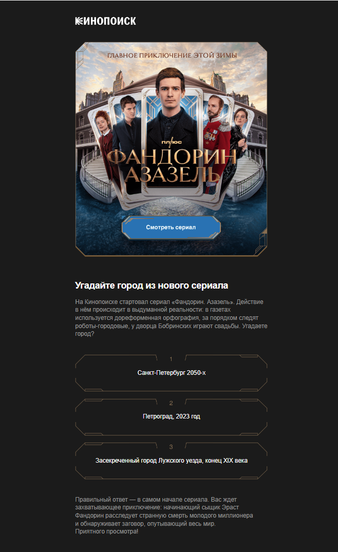 Рост интерактивности предсказывали несколько лет подряд, и в 2022 такие письма стали привычными. Но в 2023-м случится новый виток, и компаниям придётся создавать пользовательский опыт внутри письма. Давайте будем честными, бороться за внимание юзеров в электронном ящике достаточно сложно, ещё труднее — заставить их кликнуть и перейти на сайт.