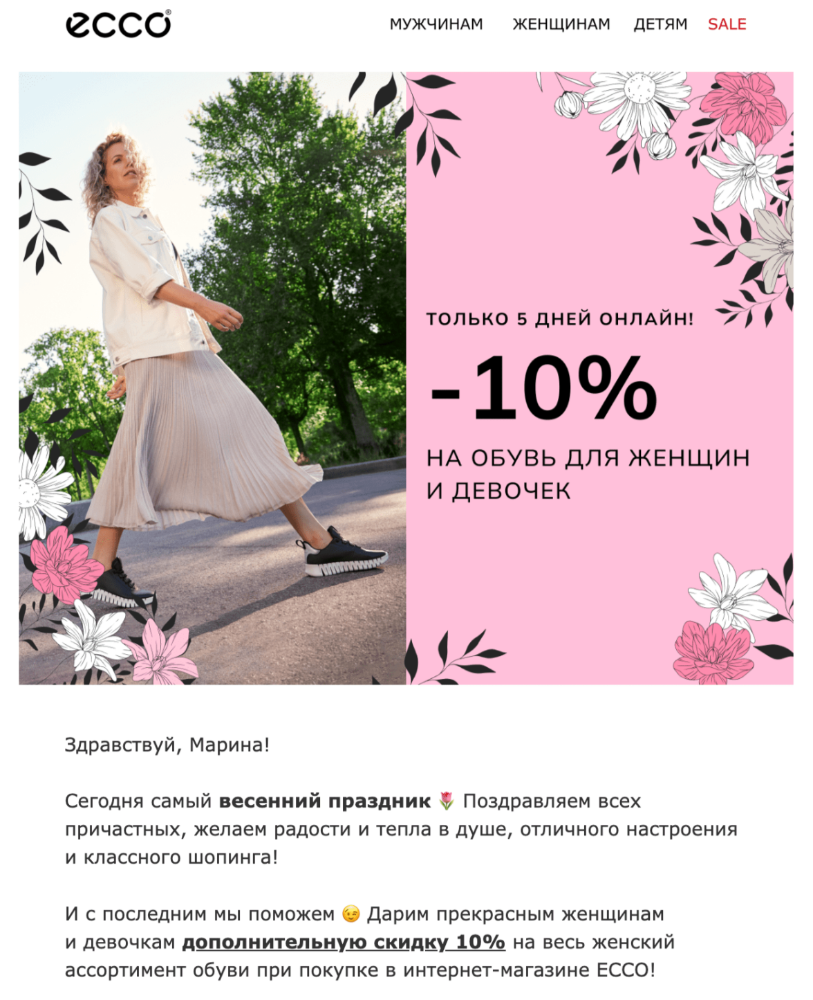 Рассылка «прекрасным женщинам и девочкам» от ECCO