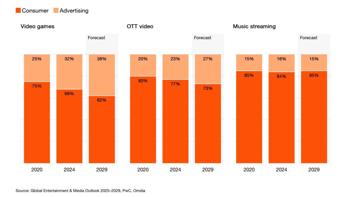 Если в 2020 году разработчики игр имели с рекламы четверть выручки, то в 2024 году — треть, а в 2029-м процент увеличится до 38,5%. Потребители готовы мириться с тем, что реклама отвлекает, если цены на игры повышают не так сильно.