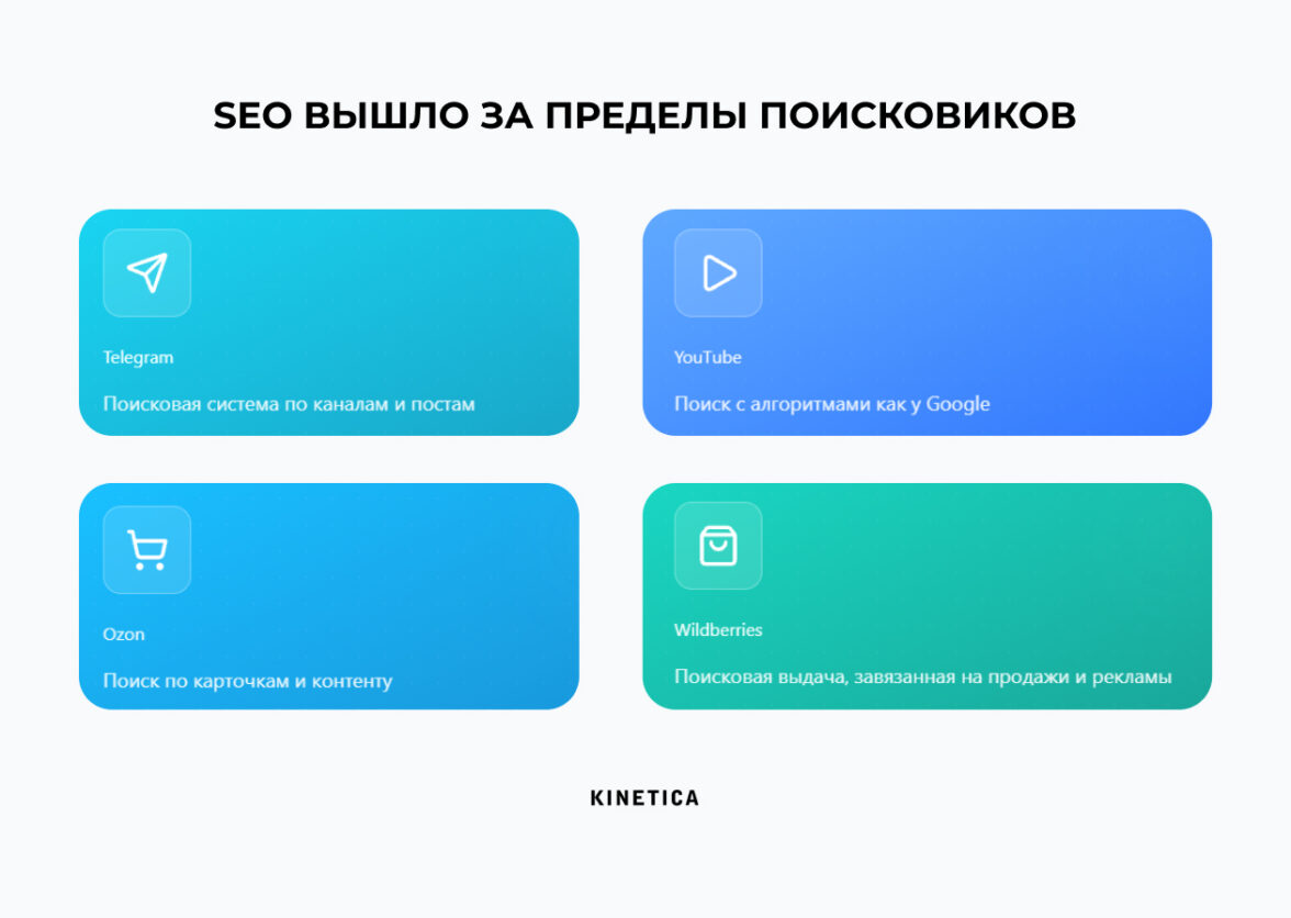 SEO перестало быть привязанным только к поисковым строкам браузеров. Люди ищут везде. Telegram, YouTube, Ozon, Wildberries — это тоже поисковые системы со своими алгоритмами ранжирования. Современная SEO-стратегия — это Omnichannel Search Marketing.
