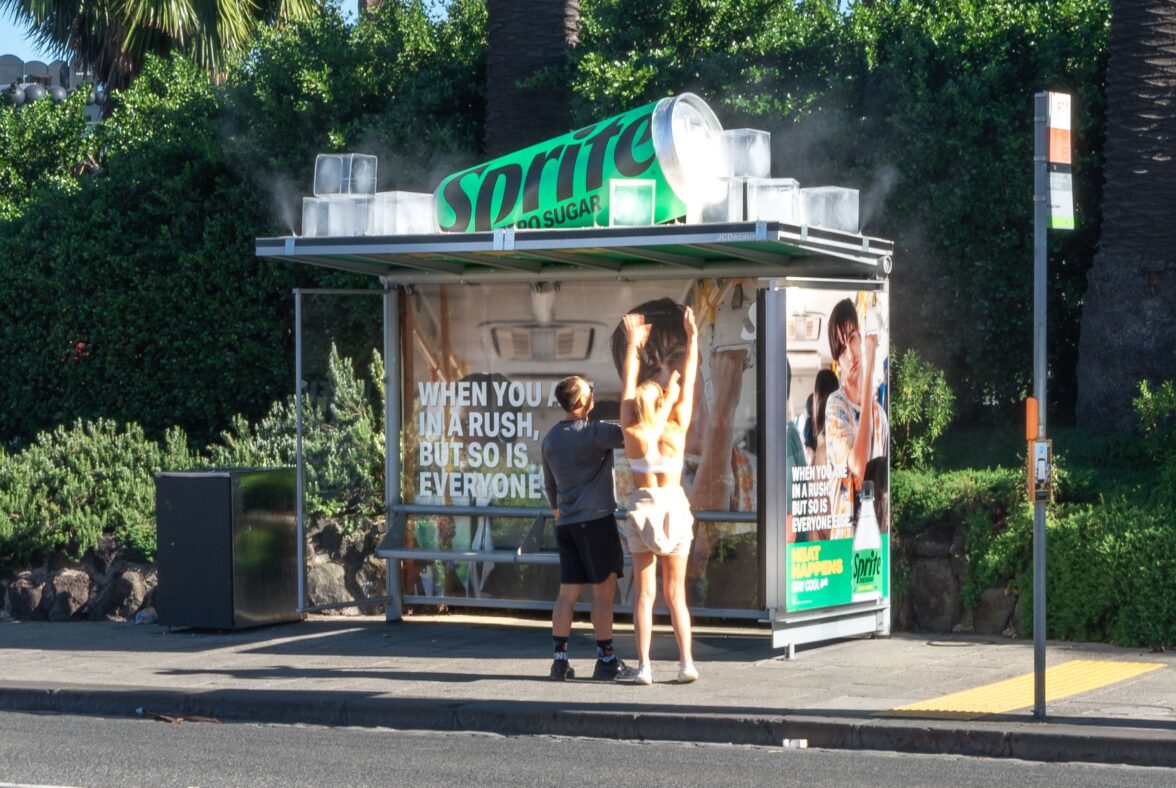 Например, в 2024 году Sprite совместно с JCDecaux создал автобусную остановку, где прохожие могли освежиться под струями холодной воды или тумана, пока ждали автобус. Так бренд усилил ассоциацию напитка со свежестью и стал полезным для горожан.