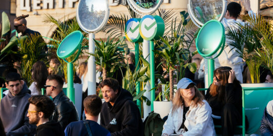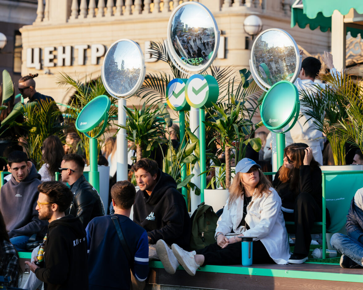 К тому же бренд проявлялся не через прямую коммуникацию, а через атмосферу, которую создавала зона. Пространство считывалось как летняя городская веранда, где приятно находиться, а уже потом — как территория Сбера. Именно поэтому проект не отвлекал человека от привычного сценария, а мягко в него встраивался. Люди приходили провести время в красивой и живой среде с брендированными элементами.