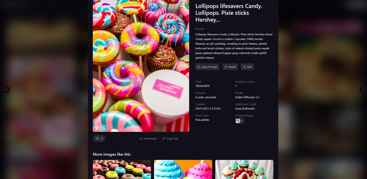 Такая информация доступна по каждому опубликованному на Playground AI изображению