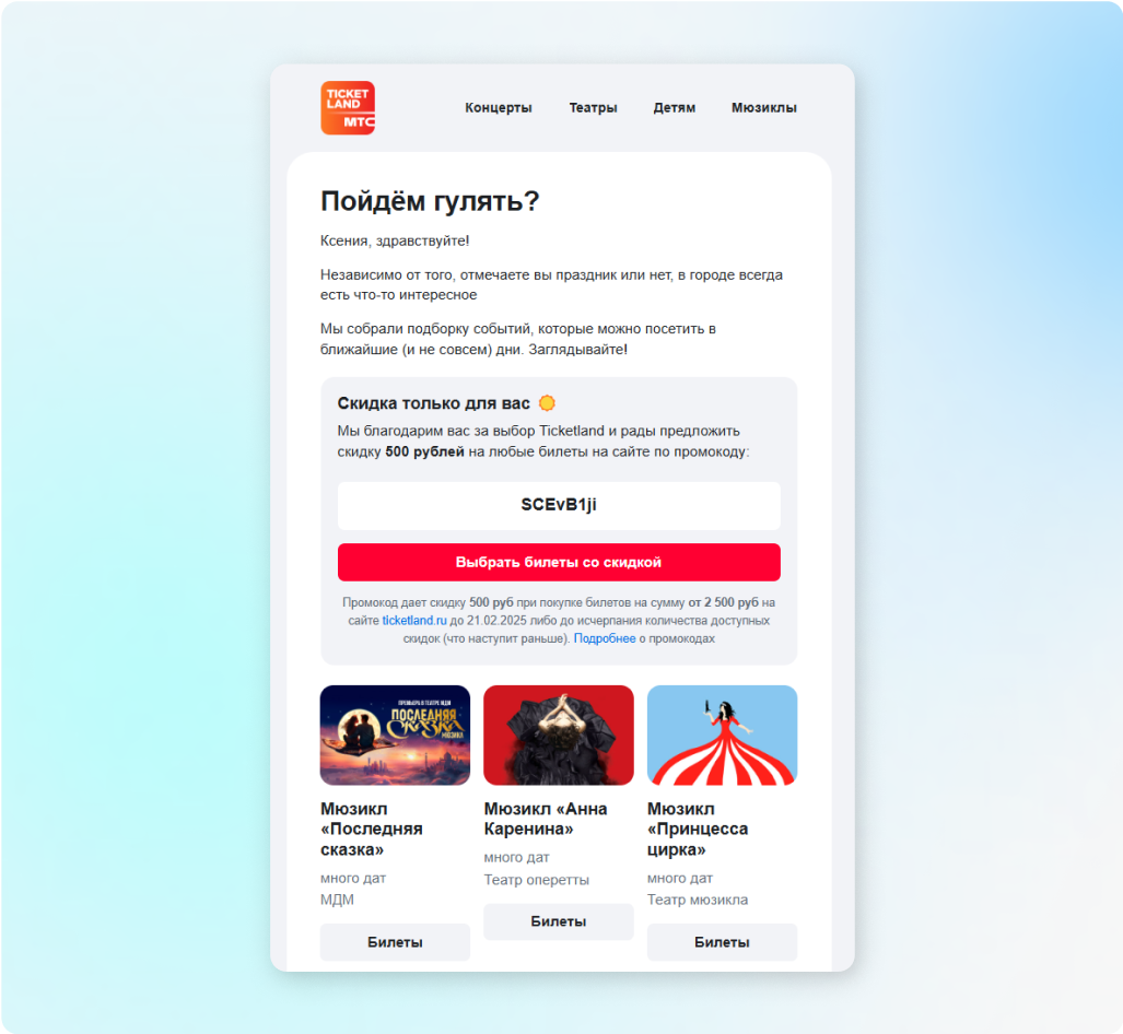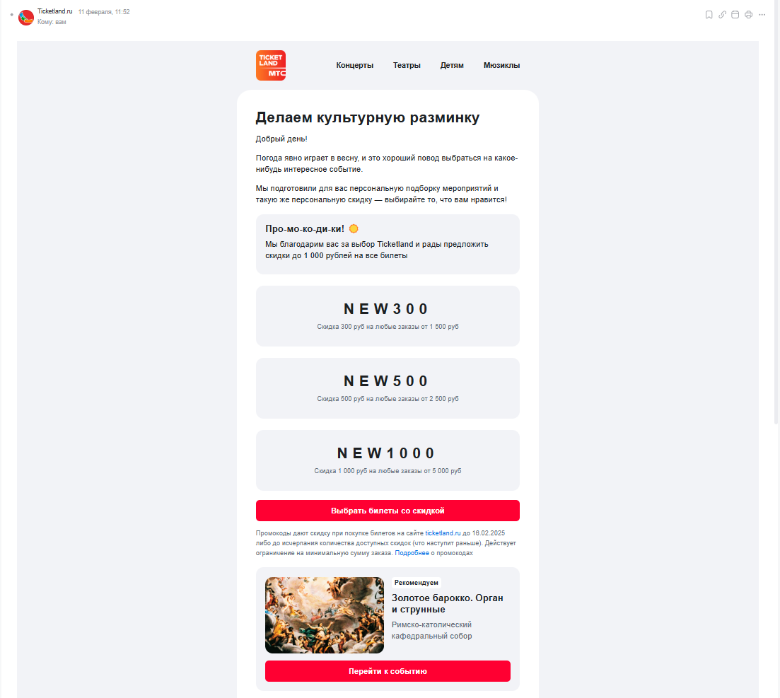 Пример письма с персональной подборкой мероприятий