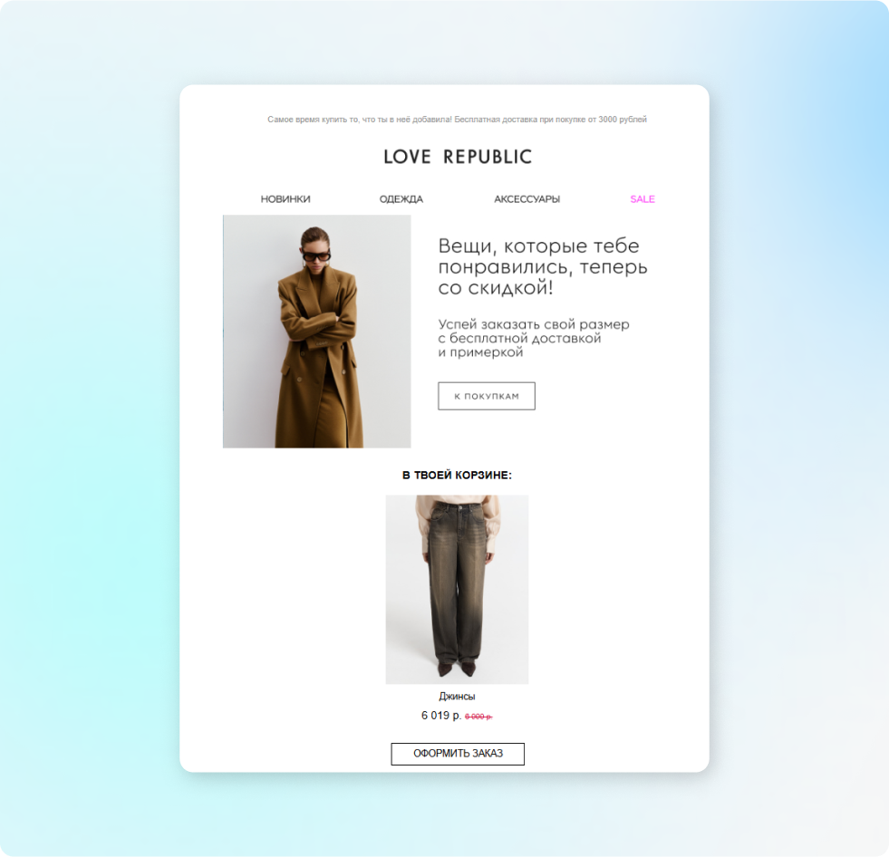 Письма-напоминания. Основная цель таких писем — допродать товар и вернуть неактивного клиента. Рассмотрим подробнее, как это работает: