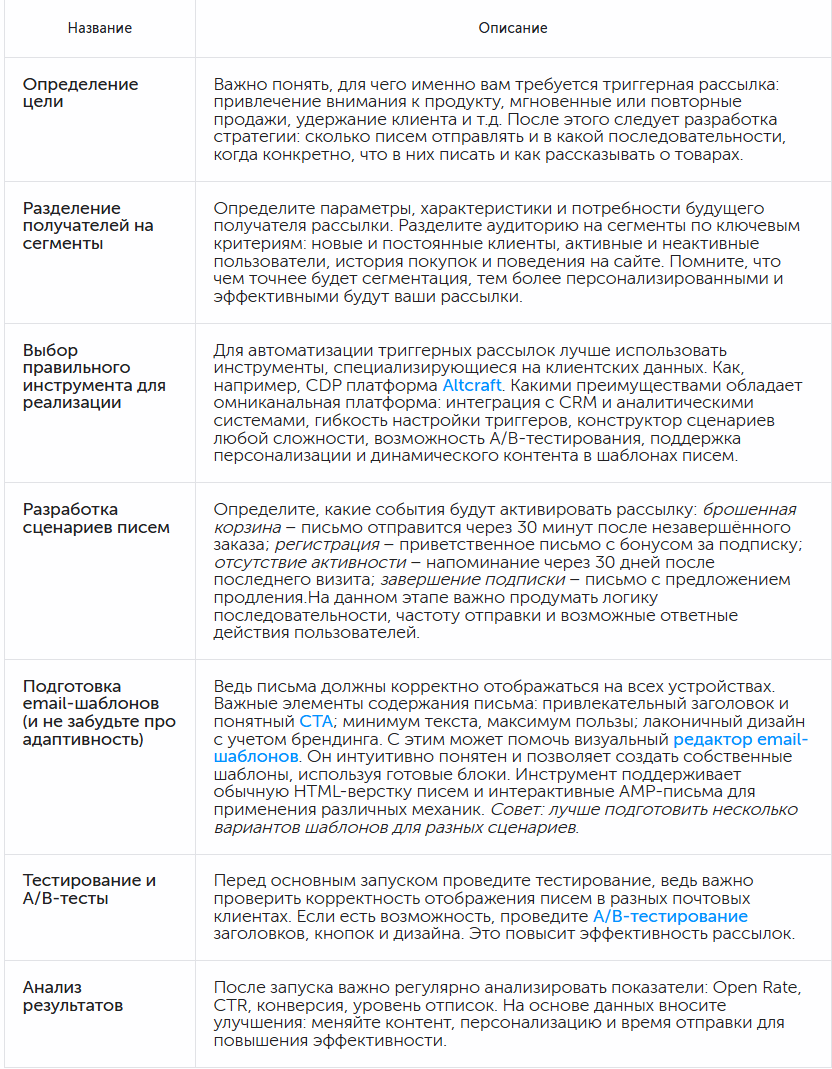 3. Тестируйте регулярно — поведение пользователей и бизнес-процессы меняются, поэтому проверка актуальности и эффективности триггеров должна быть постоянной.