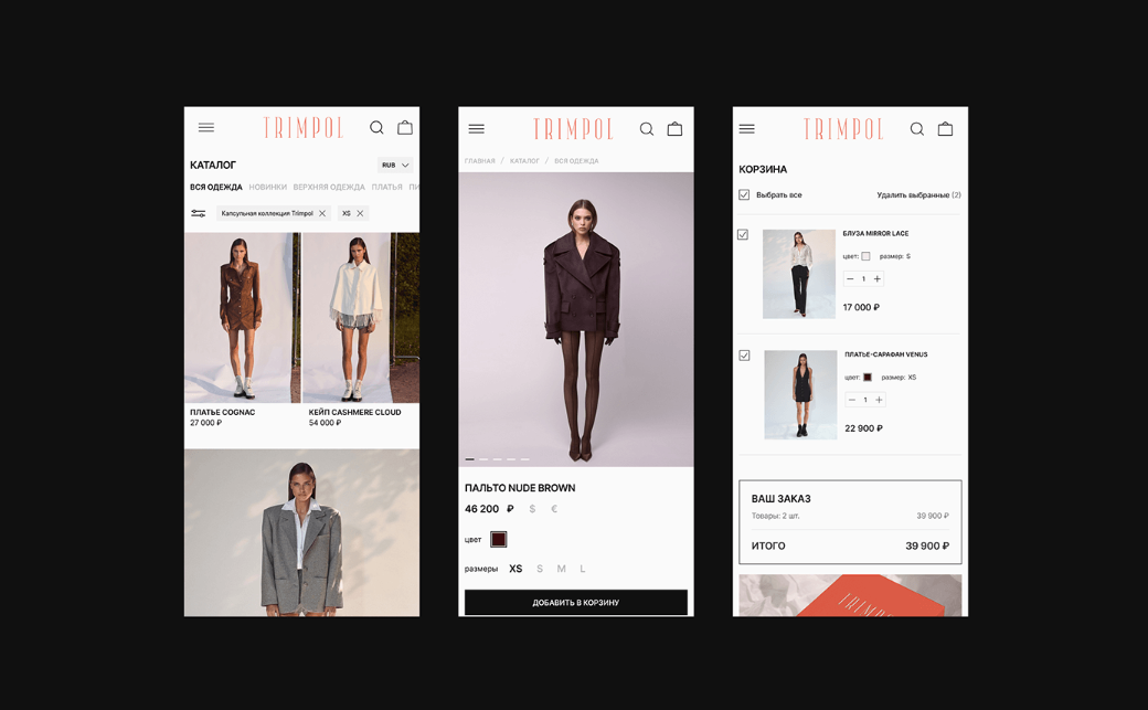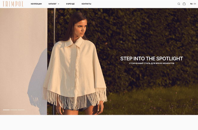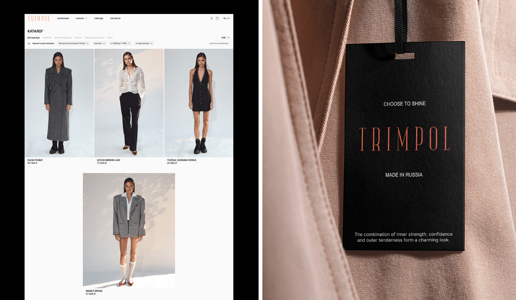 TRIMPOL — российский бренд женской одежды, создающий элегантные и комфортные вещи для тех, кто уверенно держит свой ритм — в офисе, на бранче или вечерней прогулке. Когда команда TRIMPOL обратилась к нам, задача стояла амбициозная: усилить онлайн-присутствие бренда, переосмыслить визуальный стиль и подготовить платформу для выхода на международные рынки.