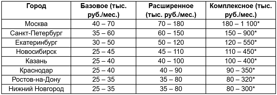 Примечание: верхние пределы характерны для крупных брендов или федерального охвата