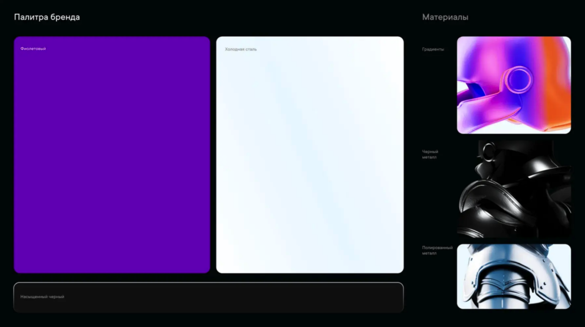 Брендинг работает на уровне текстур: можно использовать любые рыцарские атрибуты, но они всегда будут серебряными, чёрными или переливающимися от фиолетового к оранжевому.