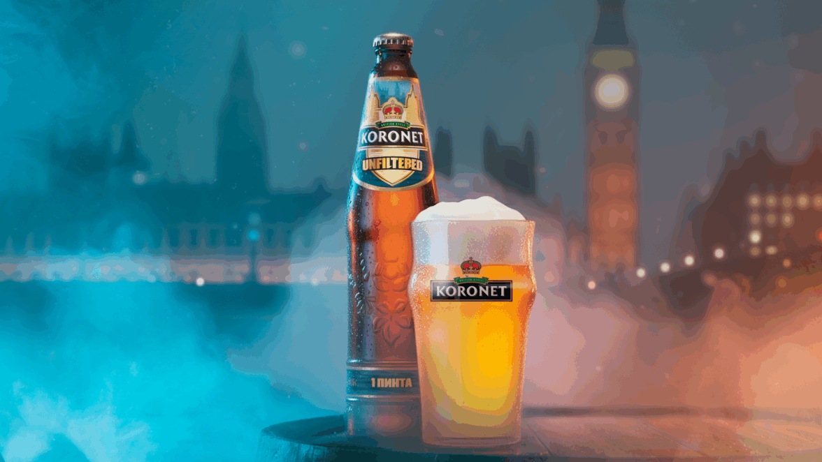 Проект стал продолжением успешного сотрудничества с брендом Koronet, для которого мы ранее создали этикетки для сортов Pub Draught и McKilt. В это раз задача была разработать дизайн этикетки для нового сорта премиального пива Koronet Unfiltered в британском стиле.