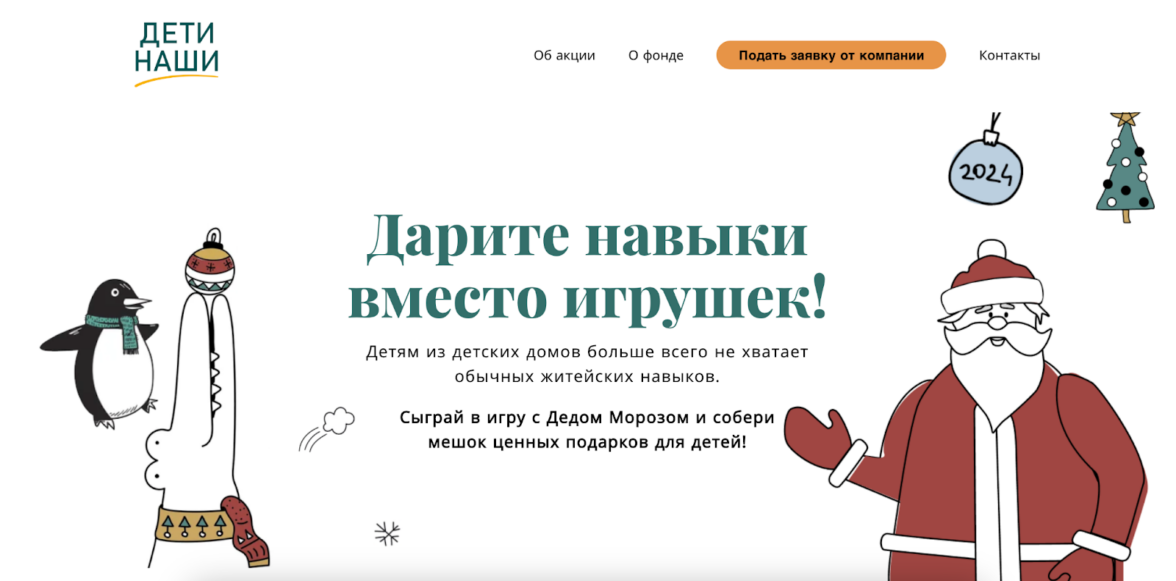 Уже в 11-й раз фонд проводит ежегодную акцию «Дарите навыки вместо игрушек!». Проект несет не только благотворительную миссию, но и просветительскую. Каждый год воспитанники детских домов получают от 12 до 18 подарков от незнакомых жертвователей. Конечно, игрушки нужны детям, но в таких подарках ребята не видят индивидуальной заботы и у них формируется иждивенческая позиция, которая мешает адаптироваться ко взрослой жизни.
