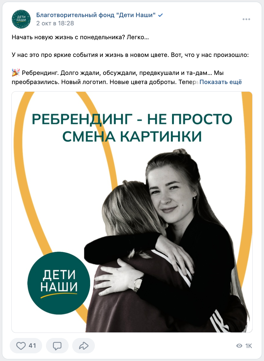 Всё просто — нам не хватало доброты вокруг. Последние годы для многих были трудными как морально, так и финансово. Особенно сложно переживали их НКО: крупные жертвователи стремились сохранить собственную прибыль, на время сократив расходы на благотворительность. Да и обычные люди сфокусировались на личных проблемах. Но нуждающиеся в поддержке никуда не исчезли, поэтому мы искали разные возможности помочь НКО и рассказать о них людям. Так и появились наши благотворительные инициативы — «Лого за донат» и разработка айдентики для фонда «Дети наши».