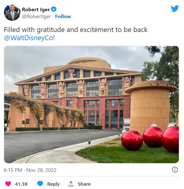 На прошлой неделе легендарный Роберт Айгер вернулся в Disney, чтобы установить стратегическое направление для возобновления роста компании», а также подготовить преемника, который сменит его по окончании двухлетнего срока. До этого он на протяжении 15 лет возглавлял компанию Walt Disney и год назад ушел на пенсию.