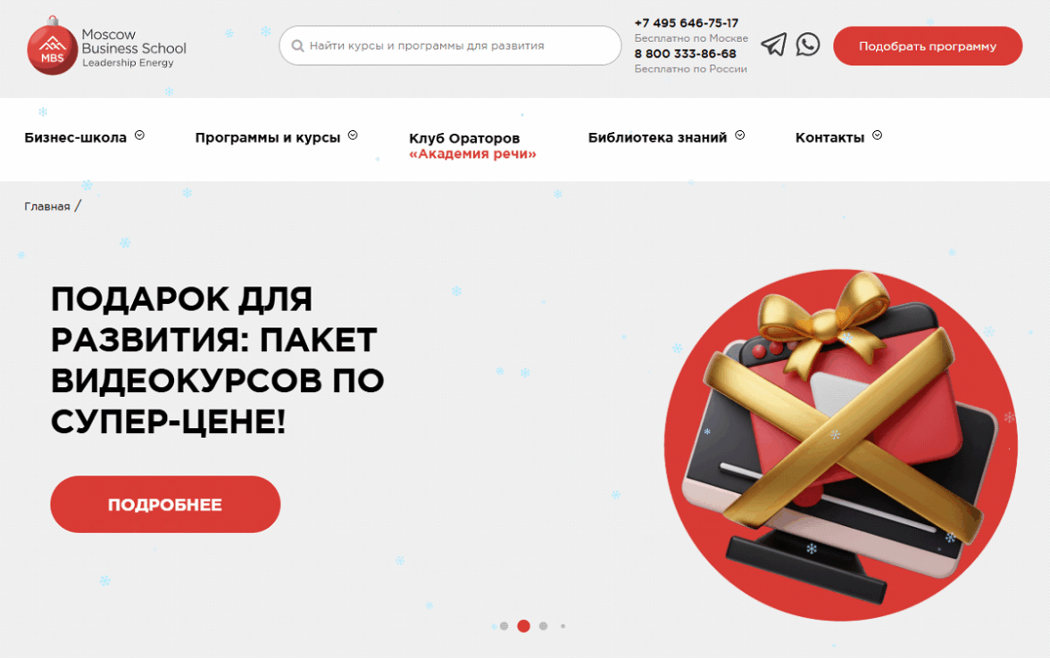 Клиент — онлайн-школа Moscow Business School, предлагающая курсы по различным профессиям (маркетинг, логистика и так далее). С 2007 года здесь обучают по авторским курсам и программам МВА, создают тренинги и проводят тимбилдинги.