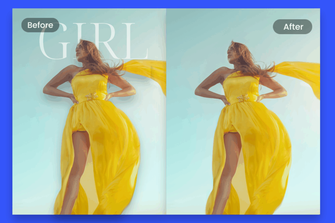 «Убрать все подписи поверх синего неба, оставить фон однородным без следов».