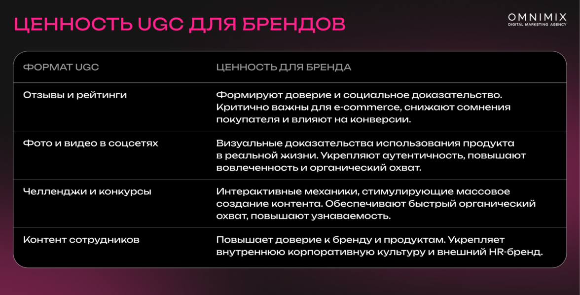 Сегодня UGC охватывает множество форматов, каждый из которых имеет свою ценность: