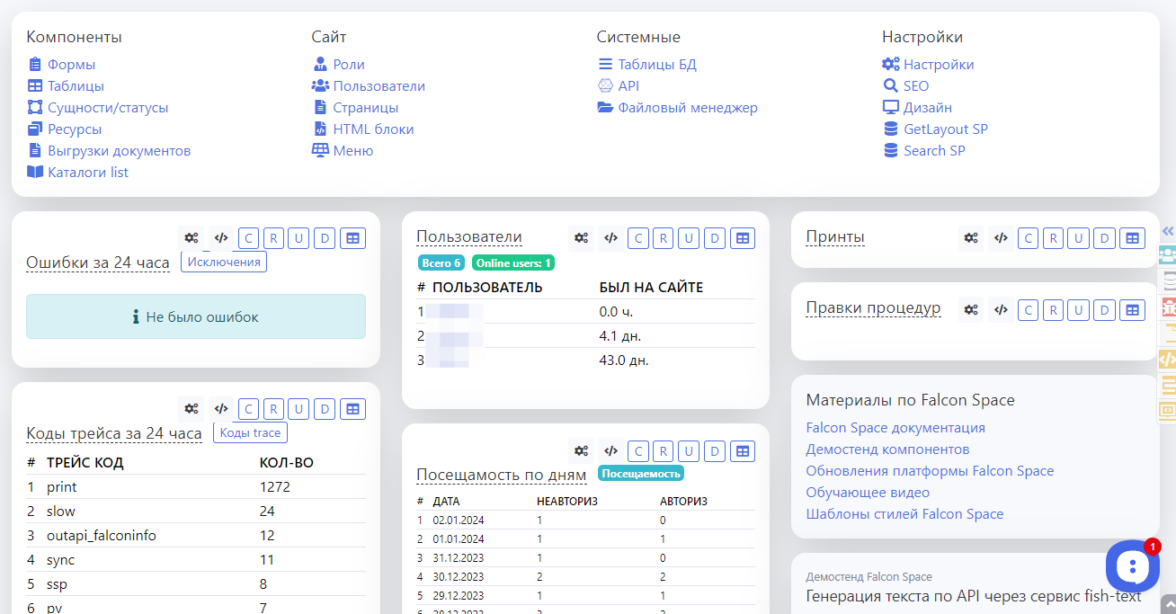 У админа-разработчика мы тоже заменили дашборд. Причем этот дашборд также может смотреть и бизнес-админ (за исключением доступа к SQL).