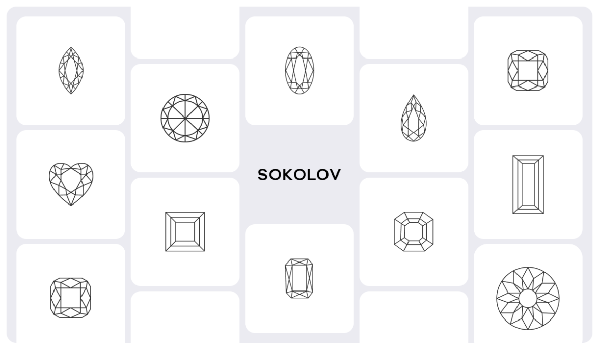 У каждого украшения есть свой набор возможных форм и вставок. Всего SOKOLOV ATELIER использует 12 огранок для изделий.