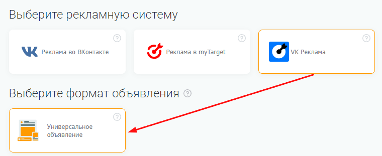 В модуле «Таргетированная реклама» PromoPult появилась возможность создавать кампании в VK Рекламе. При выборе этой рекламной системы доступно универсальное объявление: