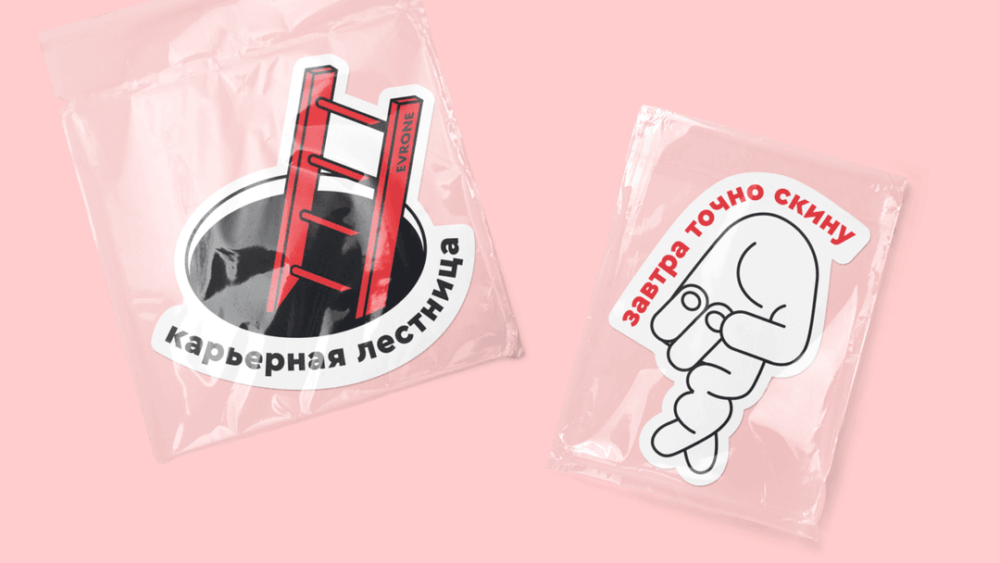 Также наших специалистов часто приглашают в качестве спикеров на крупные технологические конференции — Highload, TeamLeadConf и другие. На них мы не только выступаем, но и презентуем наши услуги на рекламных стендах, а чтобы оставить приятное впечатление о себе — дарим подарки и проводим конкурсы с разными призами. Одним из таких призов стал набор красочных наклеек с шутками про разработку и диджитал-сферу — Evrone Stickers.