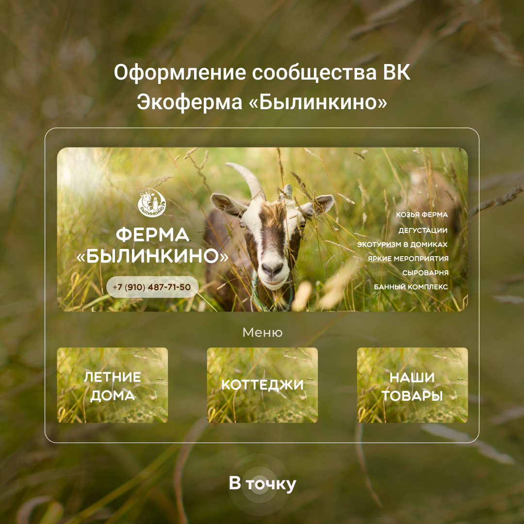 Создали новую упаковку и настроили навигацию для сообществ Вконтакте: Экоферма Былинкино | База отдыха в Подмосковье и Кафе Былинкино | Москва;