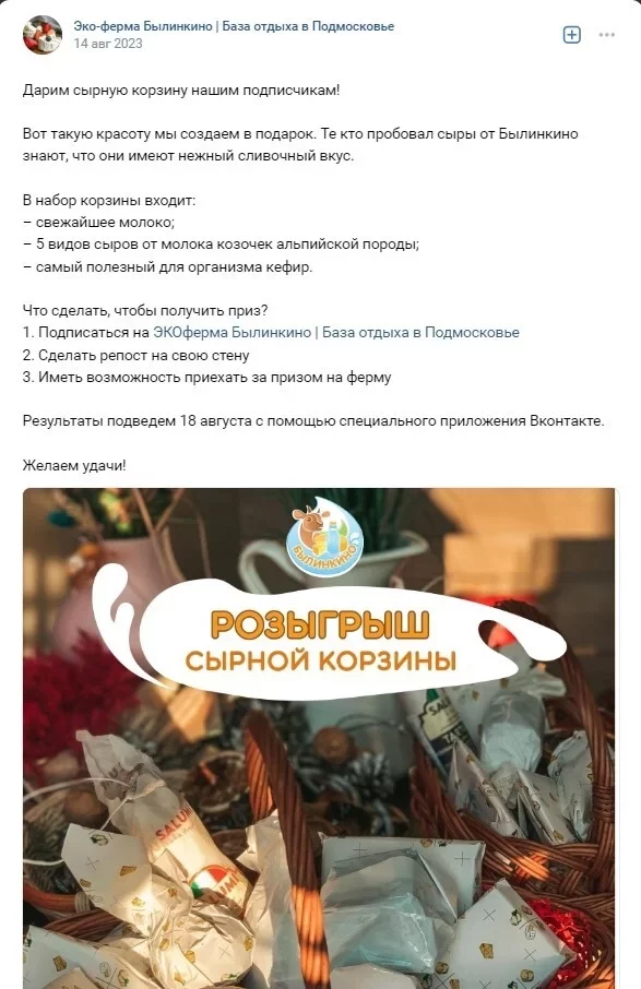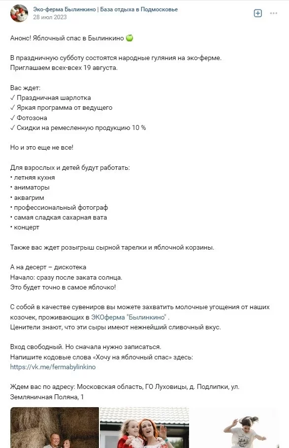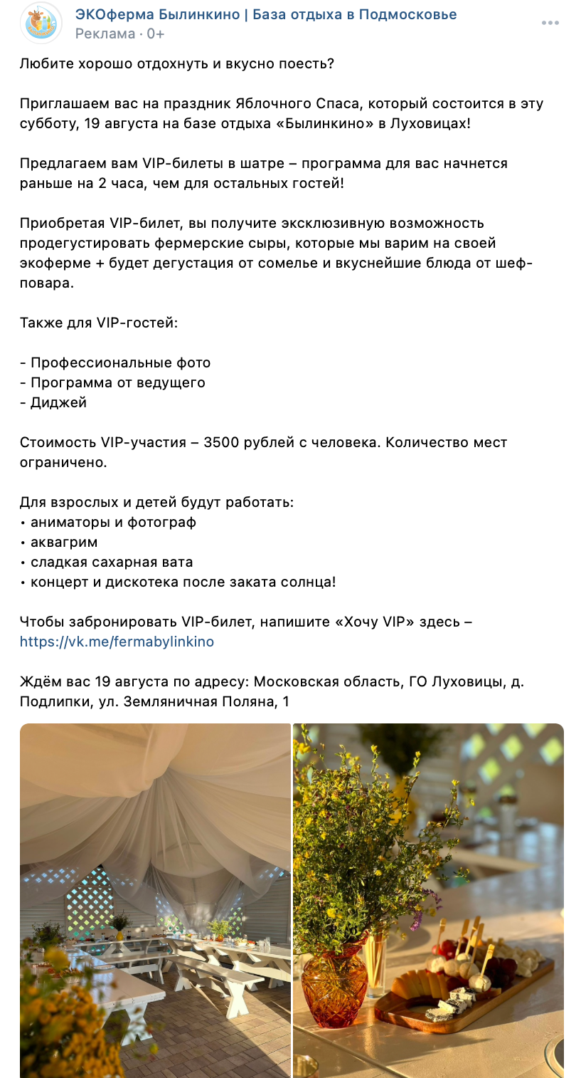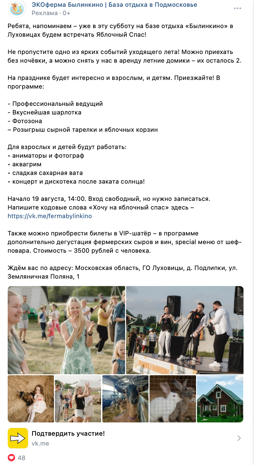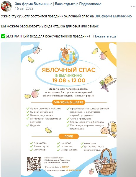 Мы продвигали мероприятия, которые были запланированы на экоферме «Былинкино» с помощью нескольких инструментов: