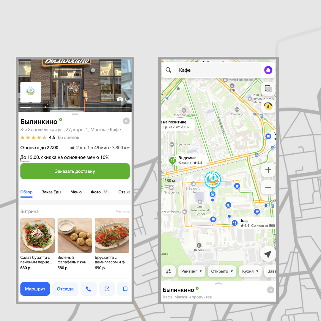 При работе над продвижением бренда мы обратили внимание что карточки магазинов фермерской продукции «Былинкино» и кафе «Былинкино» в Яндекс картах не были оформлены и оптимизированы.