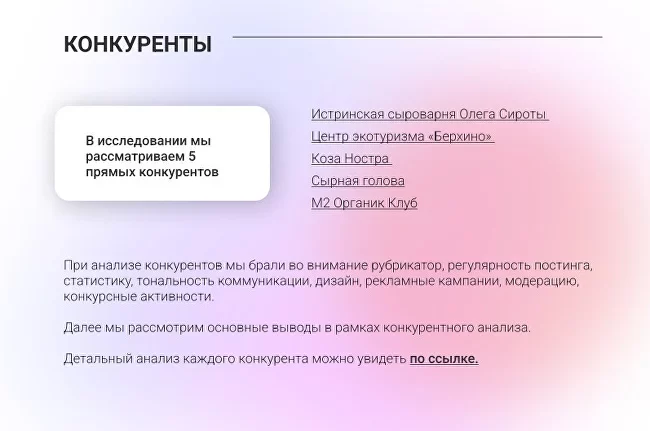 Мы провели маркетинговое исследование, где детально изучили прямых конкурентов и выбрали основные акценты.