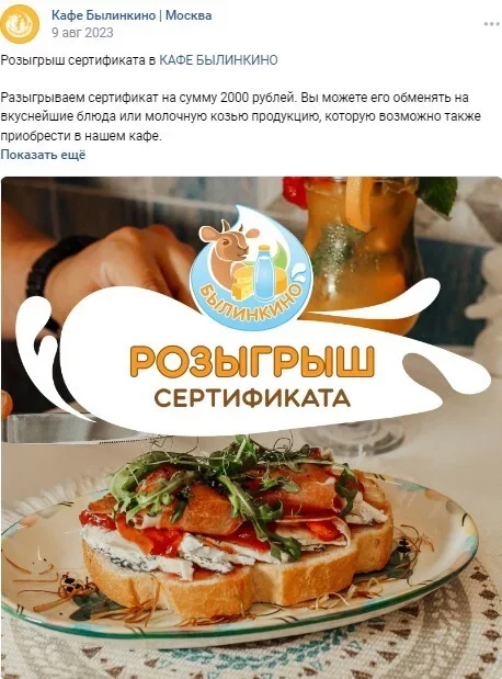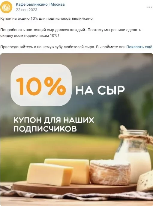 Привлекли посетителей в кафе и фирменные магазины «Былинкино». Благодаря запуску рекламных постов с купонами для подписчиков мы смогли улучшить поток людей в будние дни;