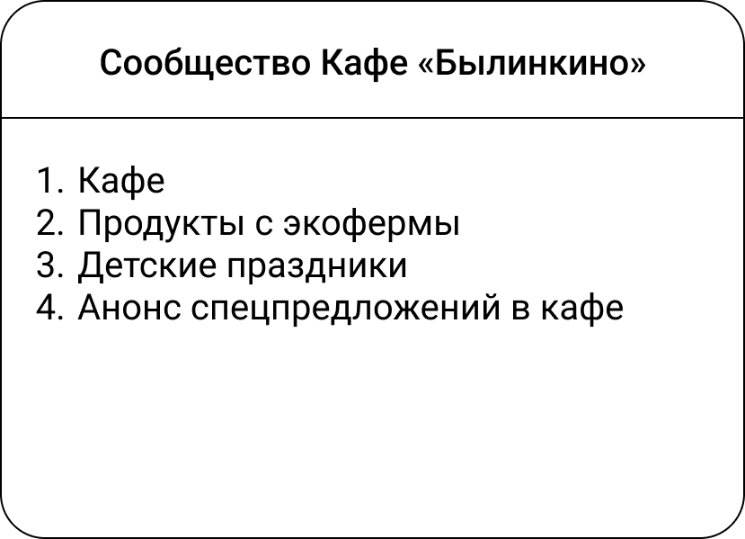 Решили публиковать посты в сообществе Кафе «Былинкино» по тематикам: магазин-кафе, продуктовые магазины, мероприятия и корпоративы.