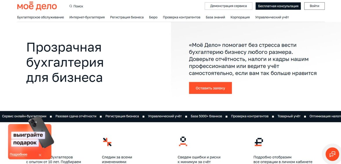 Моё Дело — онлайн-бухгалтерия для малого бизнеса, предоставляющая инструменты для автоматического заполнения и отправки УПД, а также можно купить УПД для юридических лиц. Сервис обеспечивает поддержку различных систем налогообложения и интеграцию с банками.