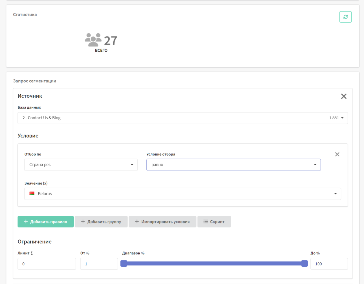Пример сегментирования аудитории по геолокации в Altcraft Platform