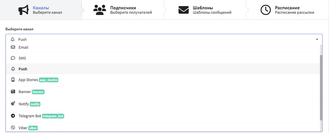 Каналы для отправки сообщений в Altcraft Platform
